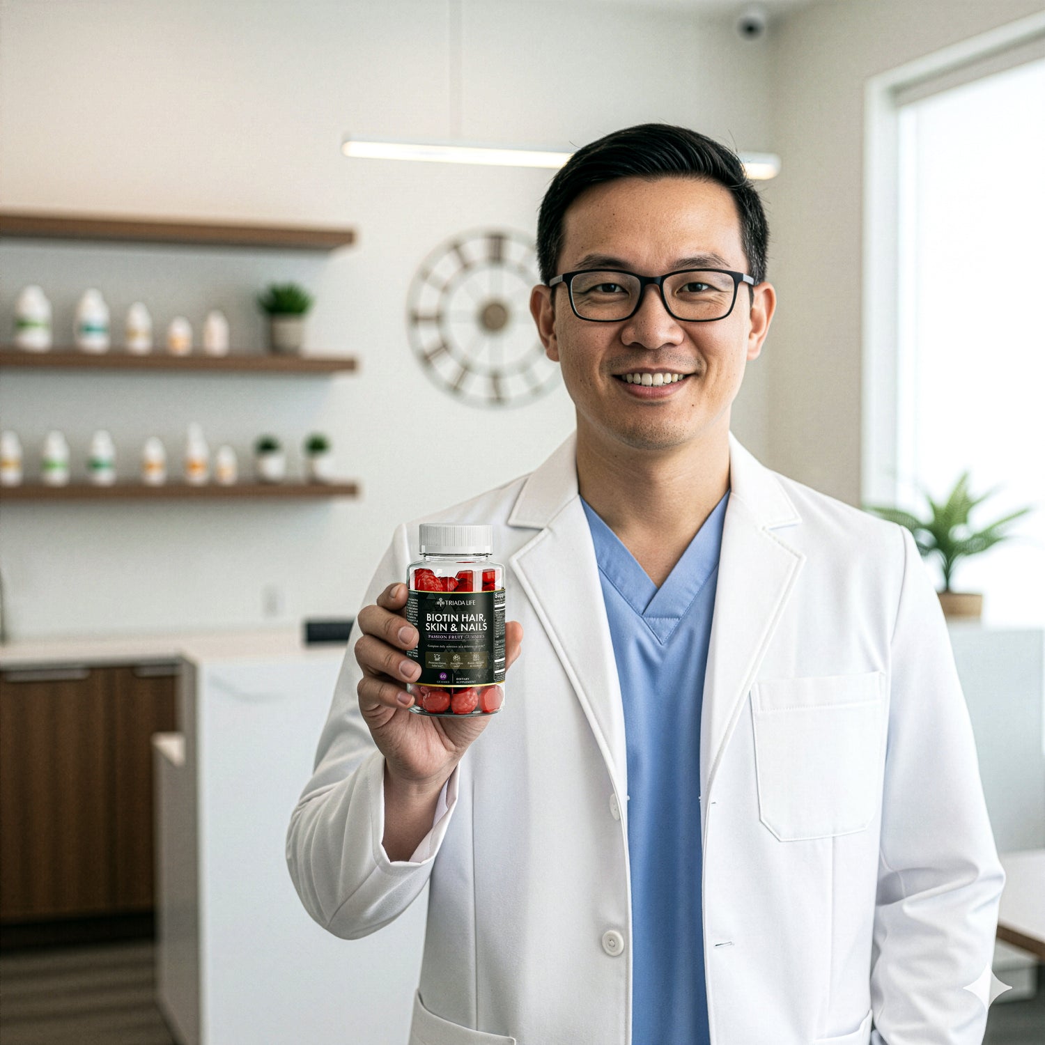Biotin Hair, Skin & Nails . Delivers essential nutrients in a doctor-approved formula designed to support hair, skin, and nail health. With science-backed ingredients in a convenient gummy form, it’s a professional-grade supplement you can trust for daily vitality.